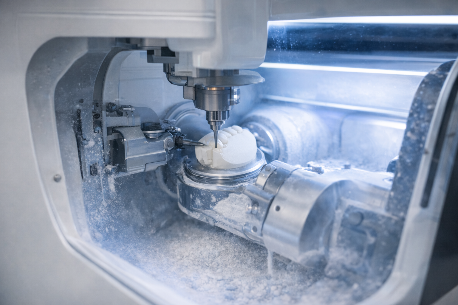 CAM sistemi potom obrađuju cirkon, metal ili keramiku uz minimalna odstupanja.
